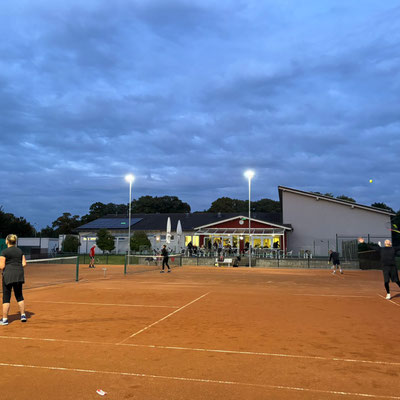 Mit mehr als 40 Tennisspieler/innen wurde am Freitagabend die neue Flutlichtanlage des TSV Bocholt gebührend eingeweiht. Bei bestem Wetter, leckerem Essen, kühlen Getränken, spannenden Spielen und fantastischer Stimmung wurde die Nacht zum Tag gemacht. Beim abschließenden Resümee waren sich alle einig: das muss unbedingt wiederholt werden! Und natürlich wird es das auch.
